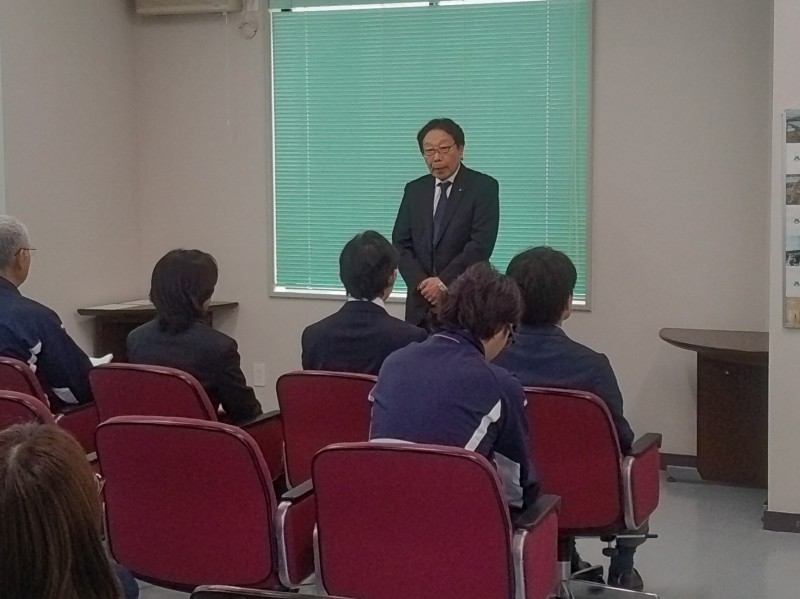 令和8年度入社式 Date:2026.4.01 / Category: 本日令和8年4月1日、当社としては久々に新卒者2名の入社式を執り行いました。人口減少や人手不足と採用活動が厳しい中、建設業は更に若手の担い手確保が最大の懸案事項でありました。今回2名の若い力を会社に取り入れる事で更なる飛躍を社員一同一丸となって取り組んでまります。 « 社内講習会 社員ユニフォーム更新 » ブログトップへ