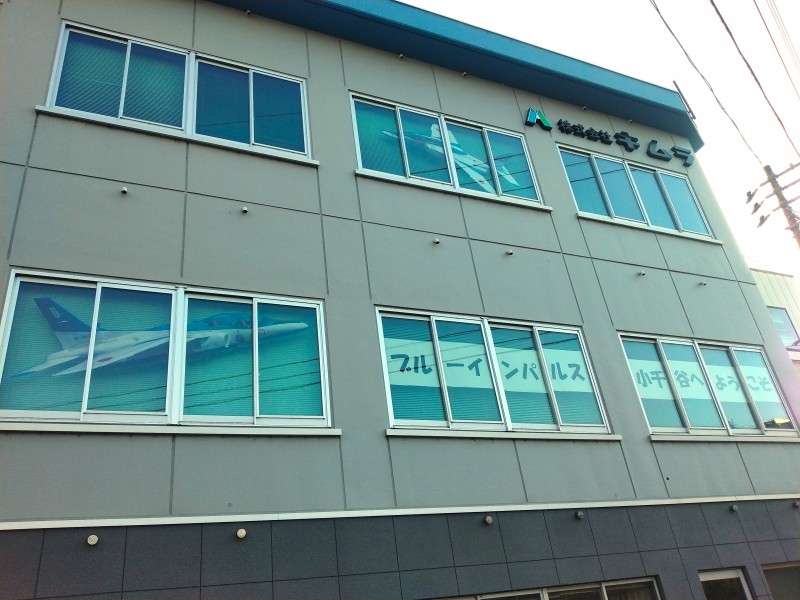 一昨年夏に惜しくも中止となったブルーインパルス展示飛行がいよいよ明後日4/19(日)に再び小千谷の空にやって参ります。先週位から市内も展示飛行に合わせ各企業や団体でイベントの成功を期待し盛り上がって参りました。当社も小千谷市役所の目の前ということもあり、社屋窓にブルーインパルスの写真を掲示させていただきました。素人写真なので余り写りは良くありませんが・・・・本日テスト飛行もあるようなので仕事そっちのけで楽しみたいと思います。